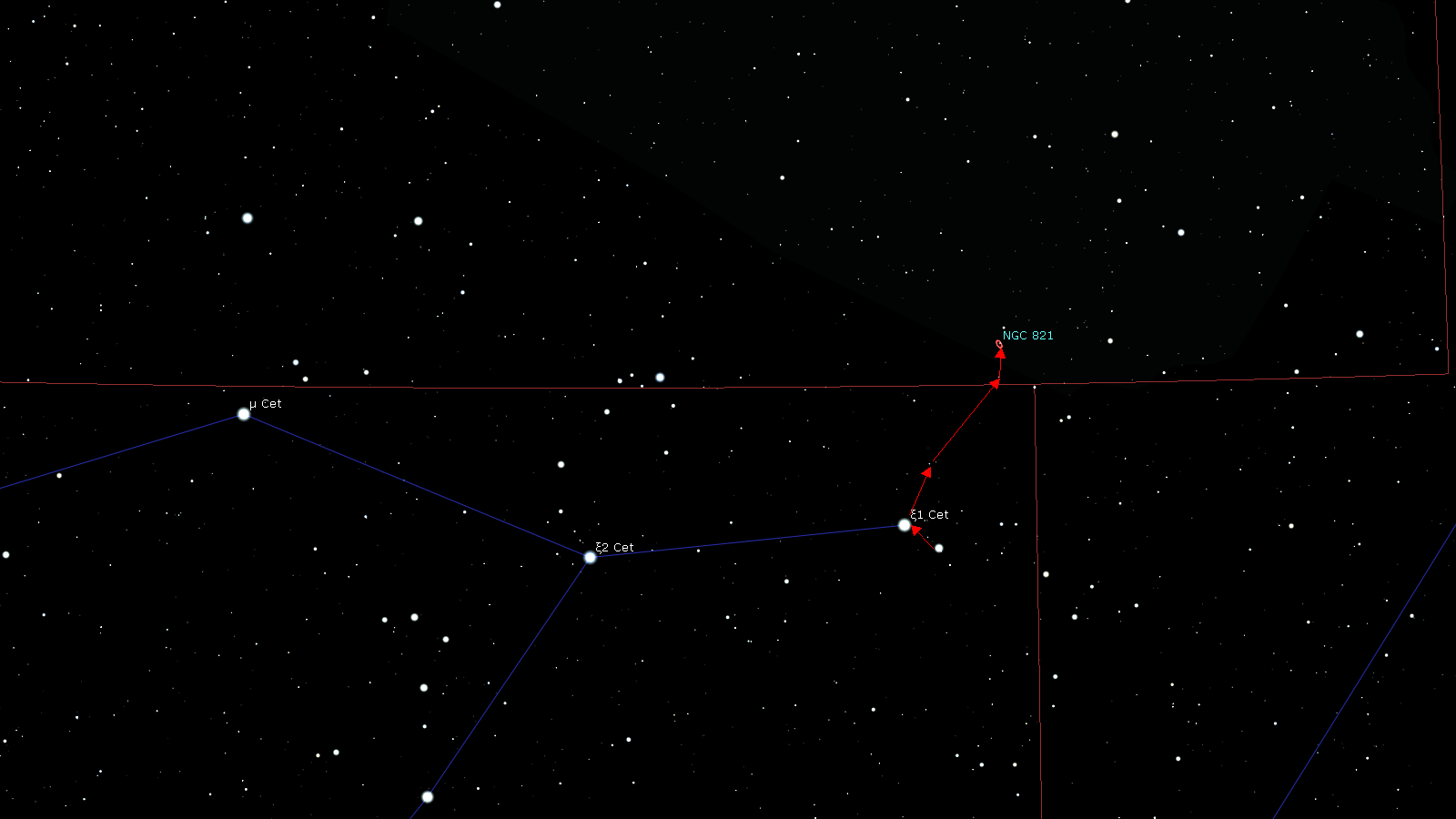 Галактика расположена на границе с созвездием Кита, поэтому путь должны пройти несколько ярких звезд в голове Кита.