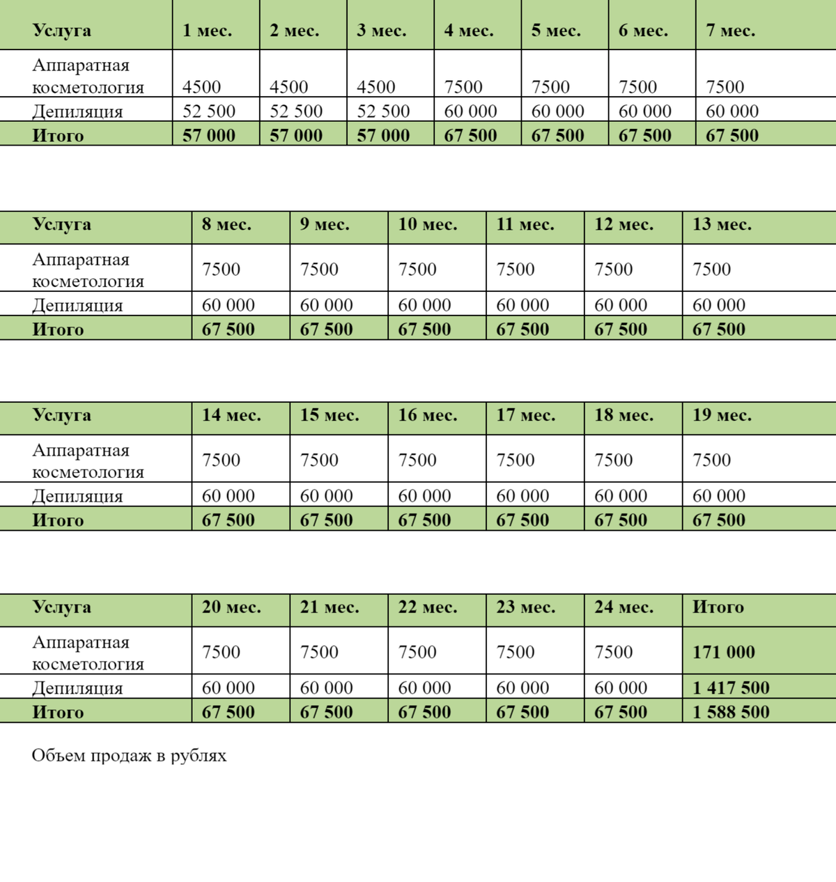 Самая сложная часть в составлении финансовой модели — сделать прогноз выручки и ее динамики. Точно предугадать, какая будет загрузка у будущего проекта в динамике, мы не можем, поэтому данные берем приблизительные. Обычно ориентируются на загрузку конкурентов, количество мастеров и их возможности по загрузке.