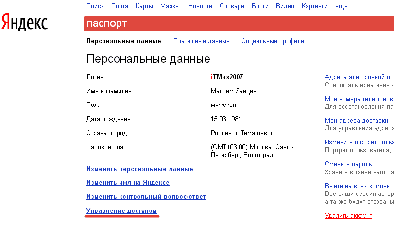 Паспорт аккаунта Яндекс