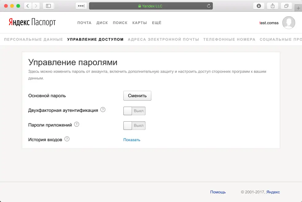 - Перейдите на вкладку “Управление доступом” в вашем аккаунте Яндекс.Паспорт.