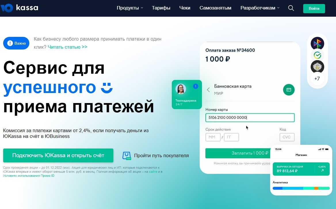 Сервис приема платежей «ЮKassa» (бывшая «Яндекс.Касса») базируется на экосистеме финансовых инструментов «Сбера». Он предлагает предпринимателям набор финансовых инструментов для получения средств от продажи: