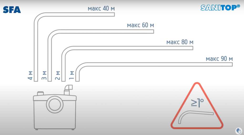 Уклон – это разница между высотой отверстия для приема вода в горизонтальный коллектор (лежак) и приемного отверстия стояка. Таким образом, уклон зависит от высоты отверстия стояка, уровня пола и высоты входа в стояк над уровнем пола.