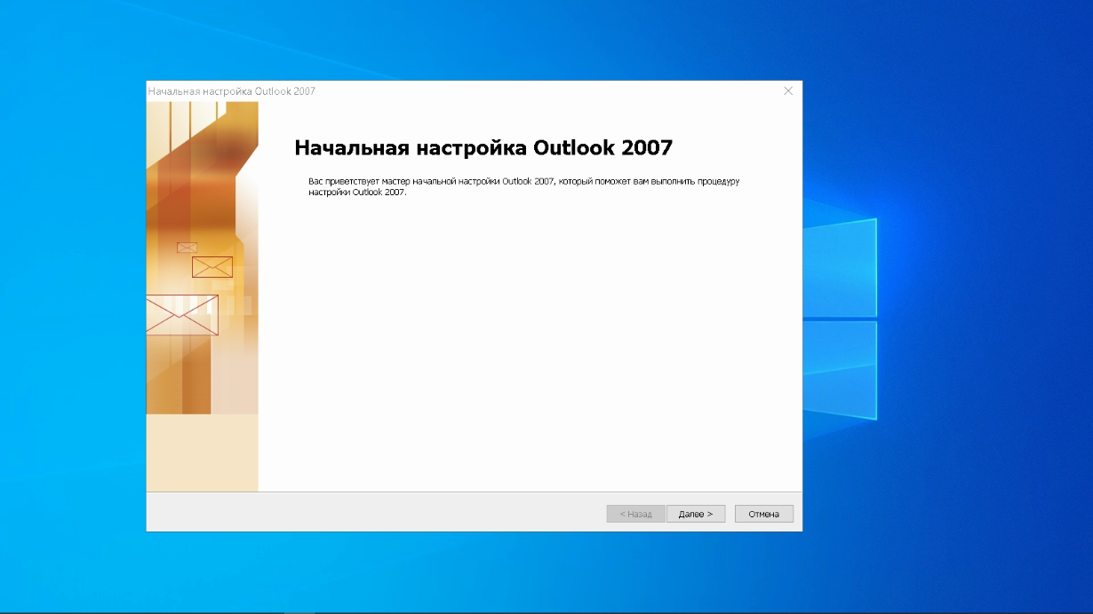 Когда вы запускаете Outlook в первый раз, вас приветствует «Мастер настройки»: