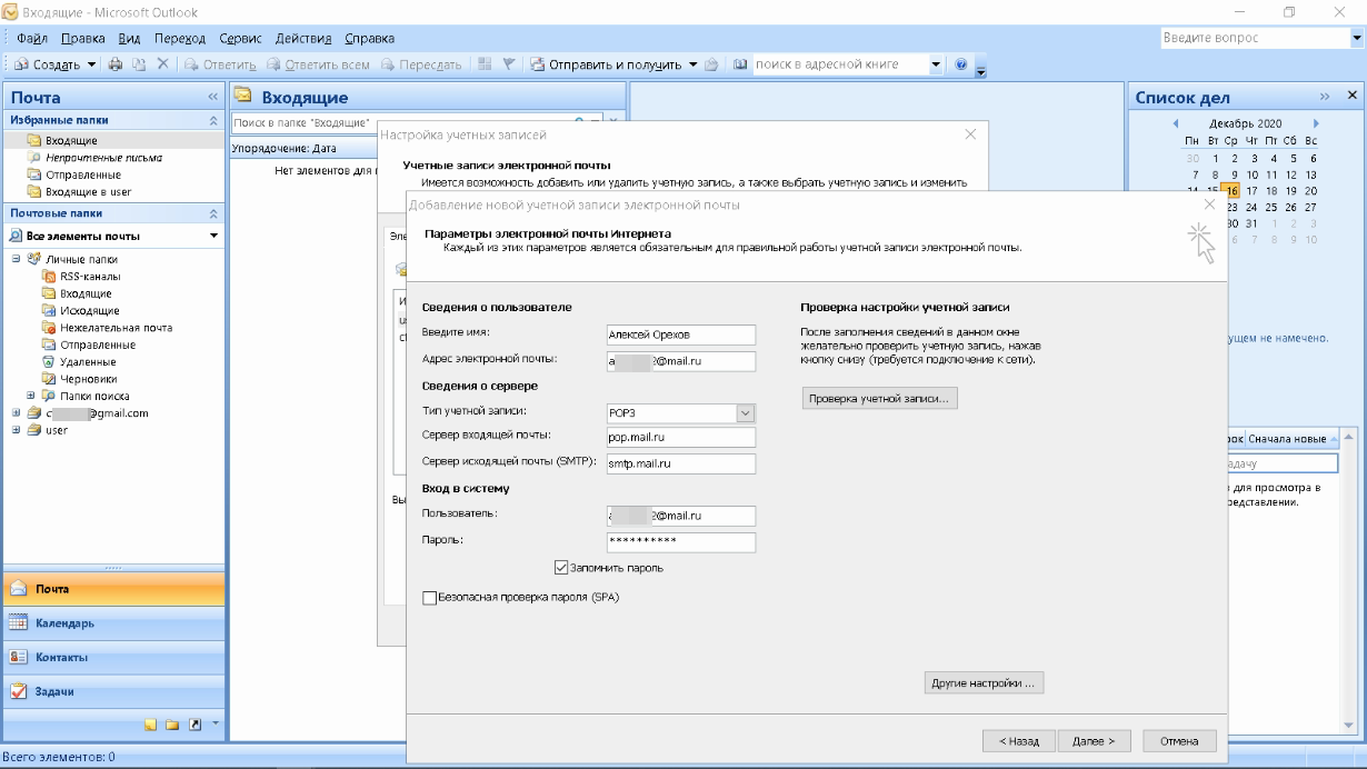 Если вы успешно подключили почту Yandex или Google к Outlook, настройка синхронизации Mail.ru не должна вызвать затруднений. Чтобы понять альтернативы, давайте воспользуемся POP3 вместо IMAP.